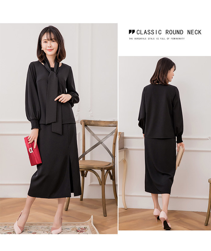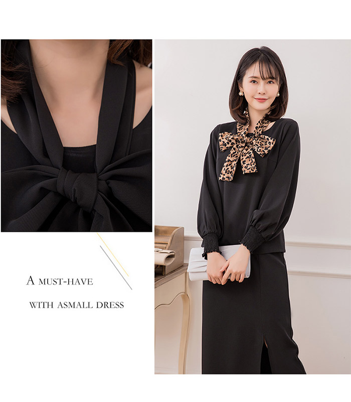 シアースリーブ ドッキングシャツ ボウタイシャツブラウス