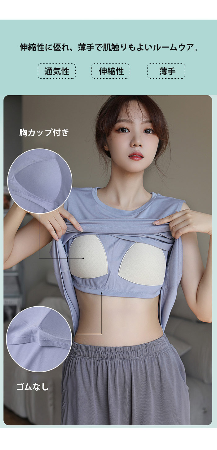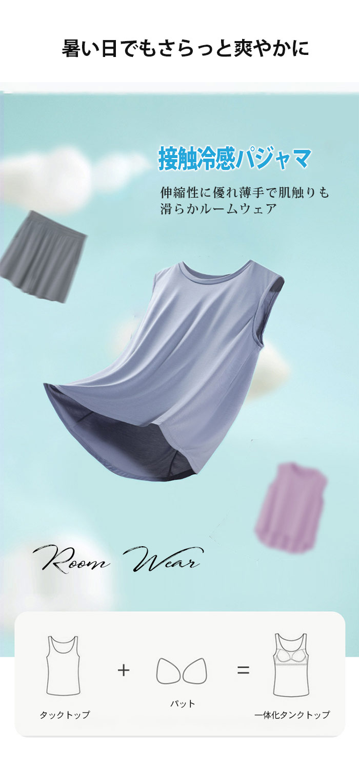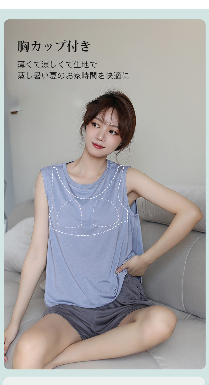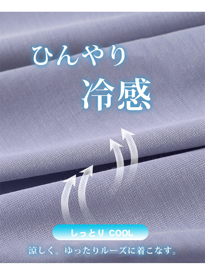 胸カップ付きレディースパジャマ サラサラ 冷感 半袖 夏 スリーブシンプルでラフな着こなしにキレイめな印象を与え 触感冷感 素材が素肌に気持ちいい