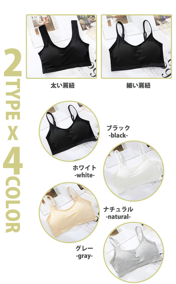 horizontal-key: 細い肩紐ホワイト 細い肩紐ナチュラル 細い肩紐グレー 細い肩紐ブラック 太い肩紐ホワイト 太い肩紐ブラック 太い肩紐グレー 太い肩紐ナチュラル