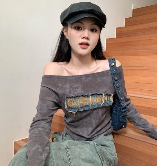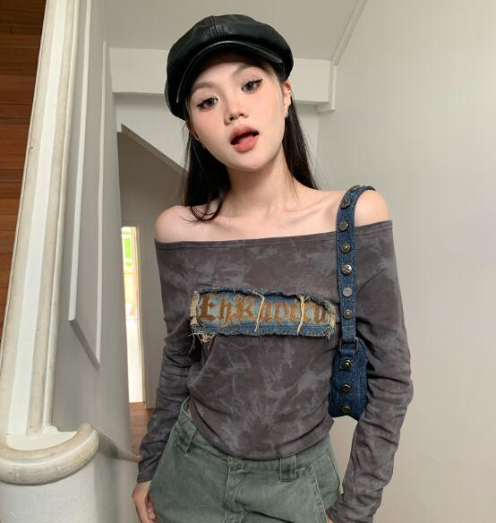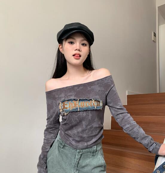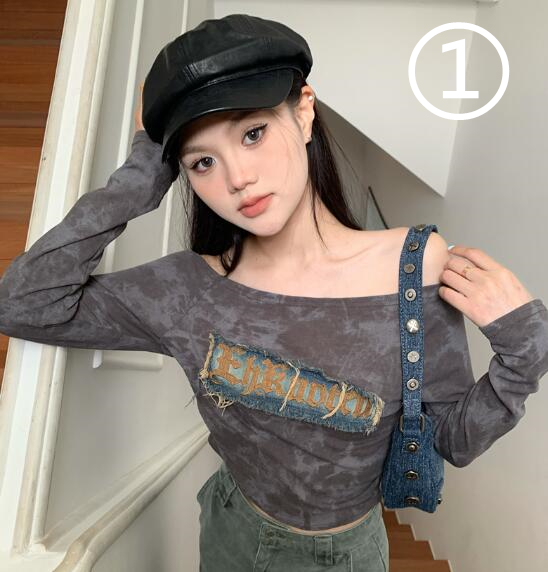 2色肩出しマーブルアシンメトリートップ