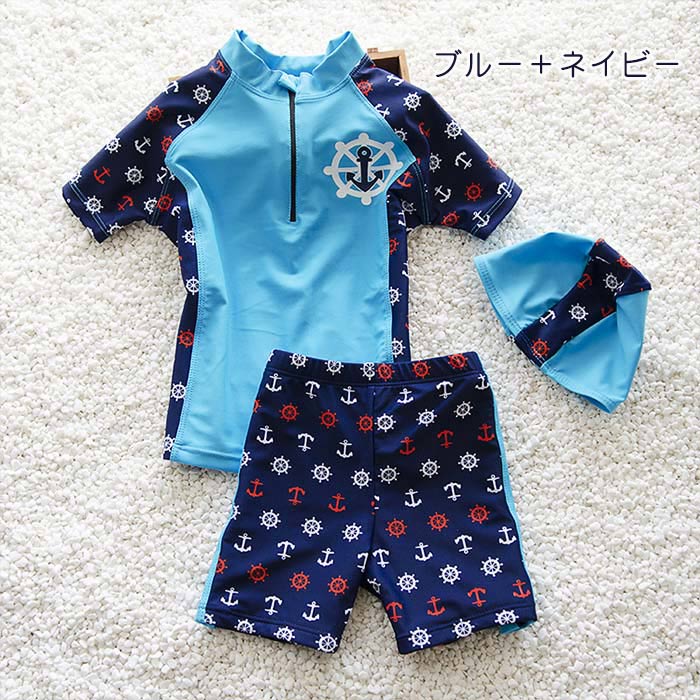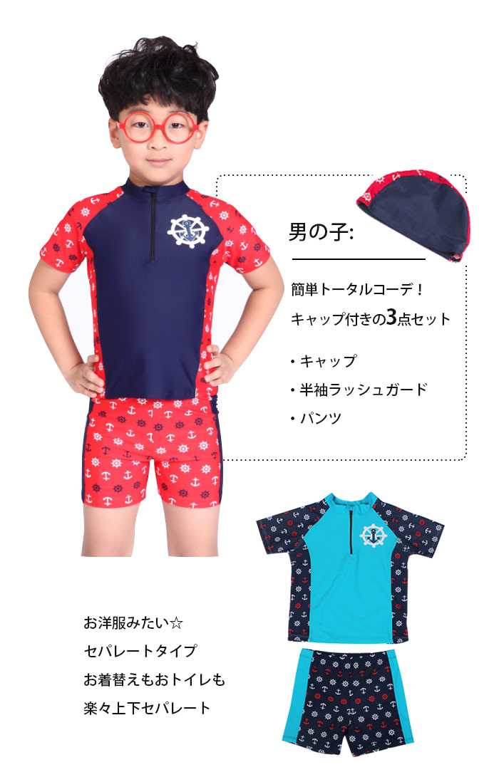 キッズ用水着 セパレート 男子 お買い得 水着 温泉 水着 吸水速乾 みずぎ 新作 水着 ビーチ 子供水着3点セット 水着帽付3点セット キッズ ラッシュガード