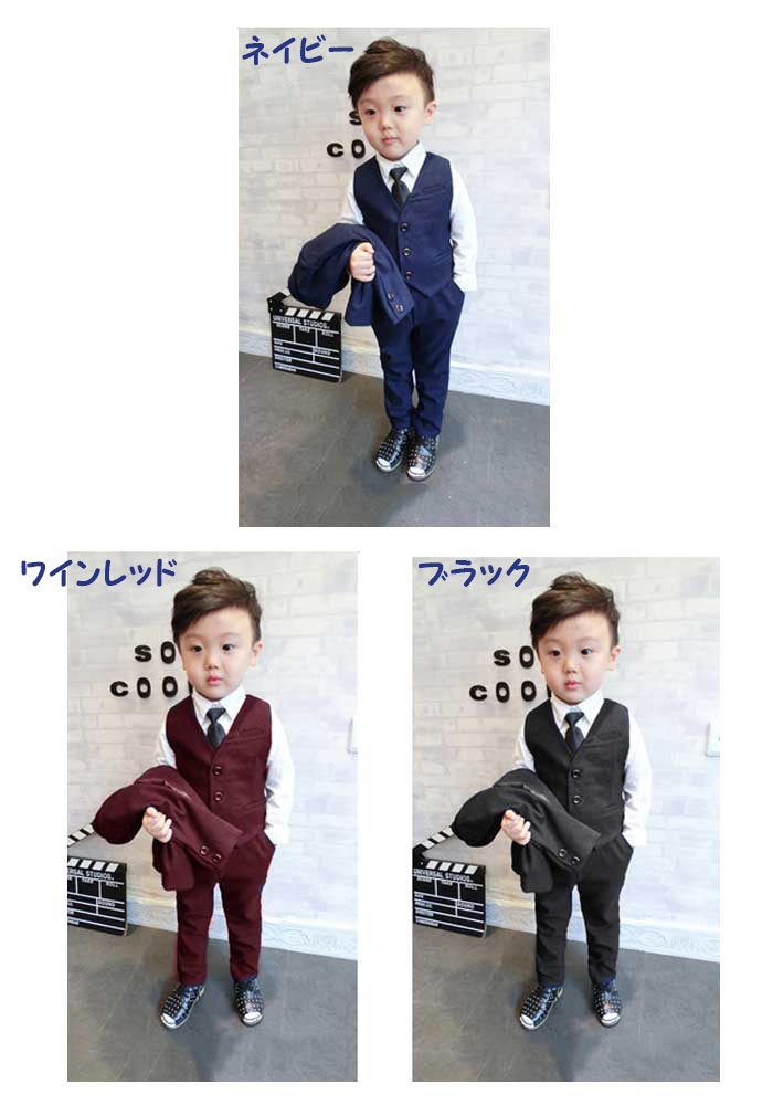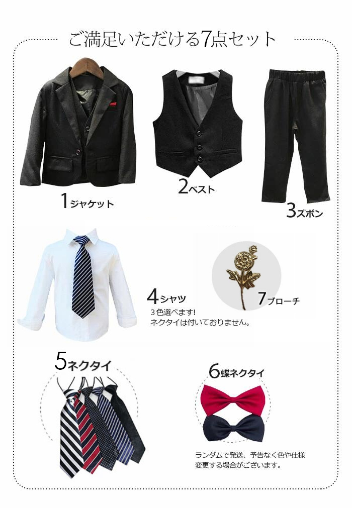 スーツ7点セット 卒業式 入園式 子供服 タキシード 発表会 男の子 結婚式 ジュニア 長袖ジャケット ベスト ズボン ネイビー ブラック ワインレッド