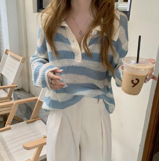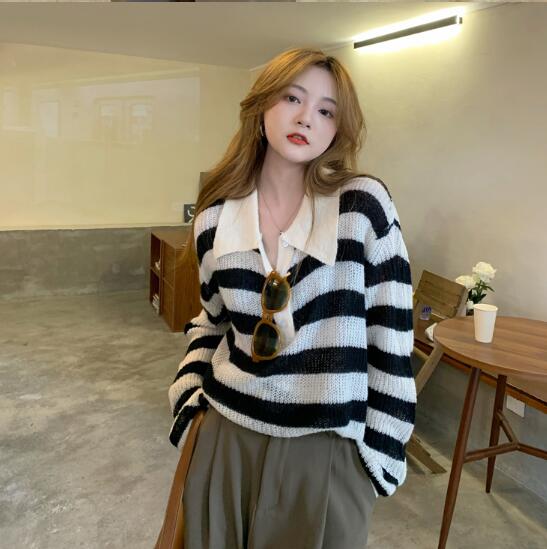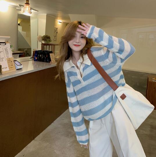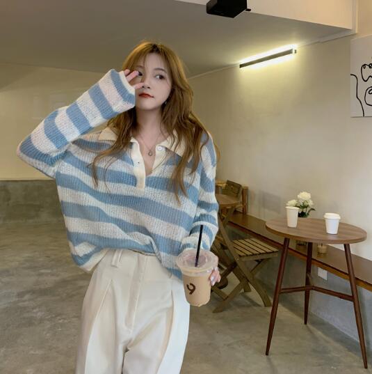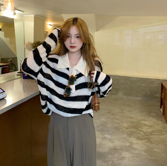 2カラーニット 襟トップス長袖大きい大