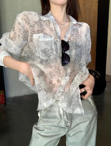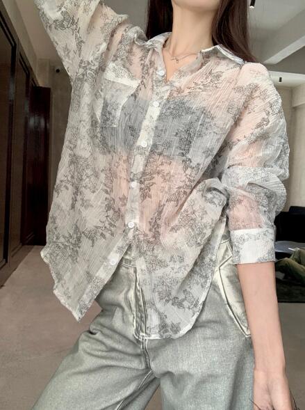 シフォンブラウス シアーブラウス ボリューム袖
