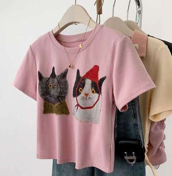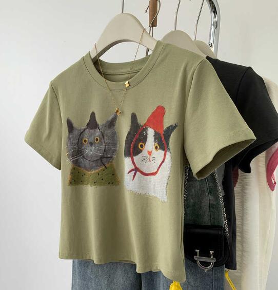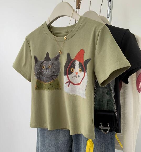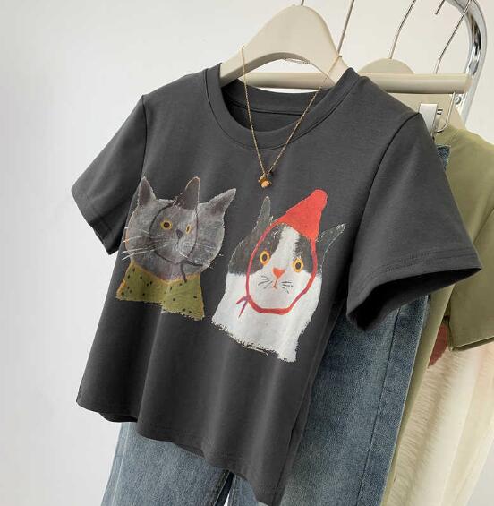 ♪M~XL展開♪猫Tシャツ半袖トップス