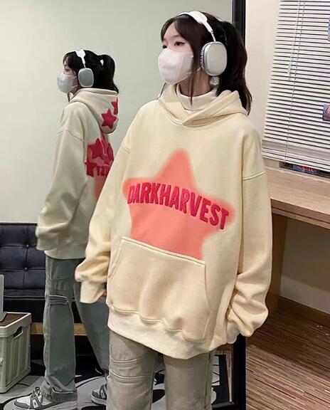 星柄バックプリントパーカートップストレ