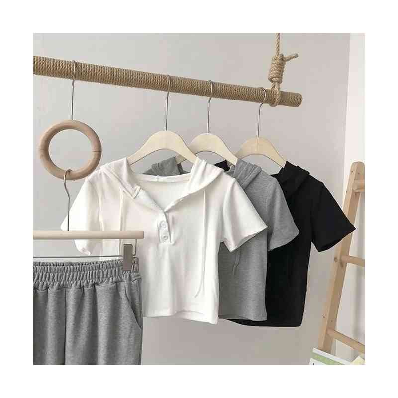半袖 サマートップス フード付きブラウ