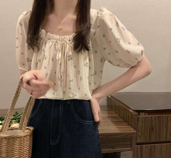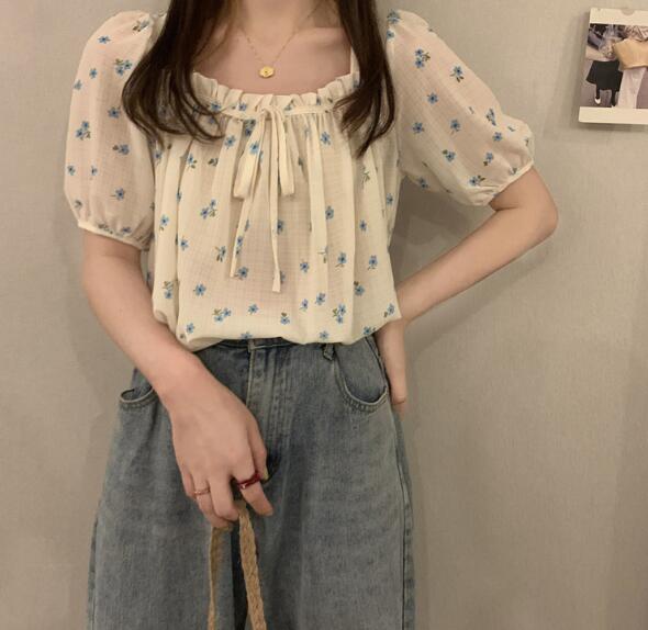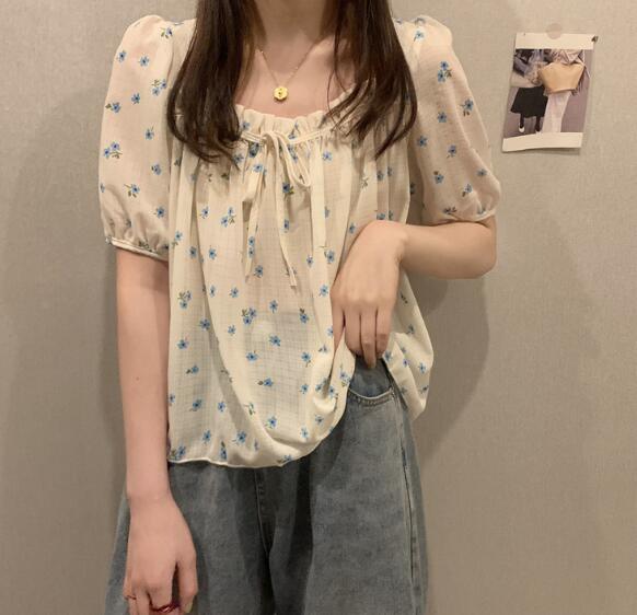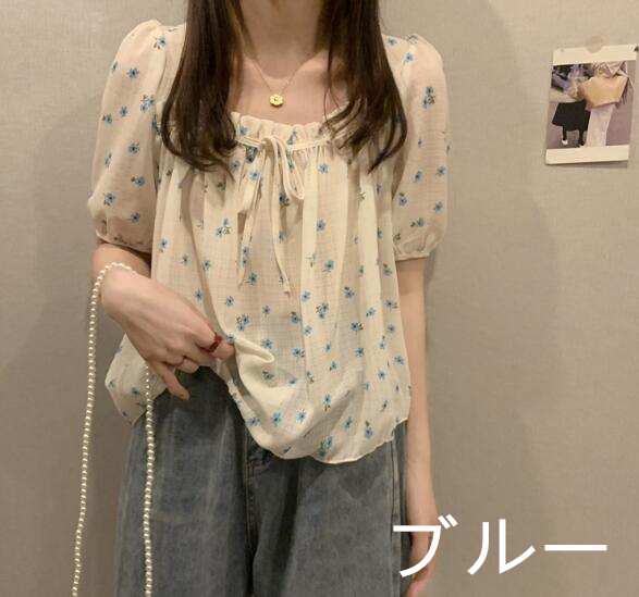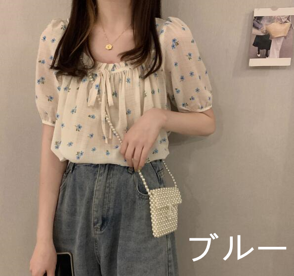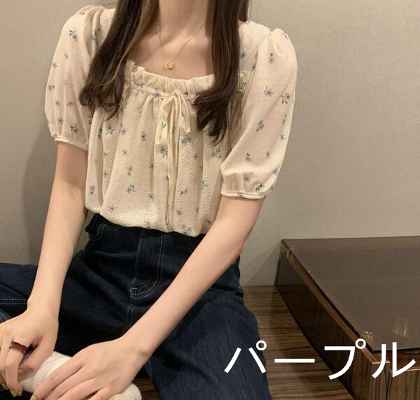 2色花柄ブラウストップスカットソー半袖