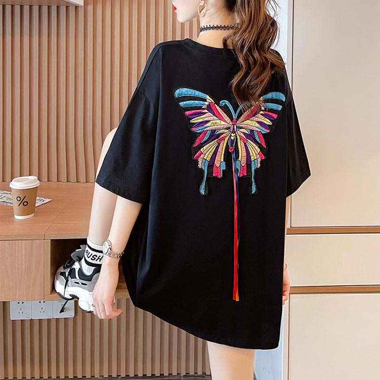 刺繍Tシャツ 体型カバー ロング丈 ゆ
