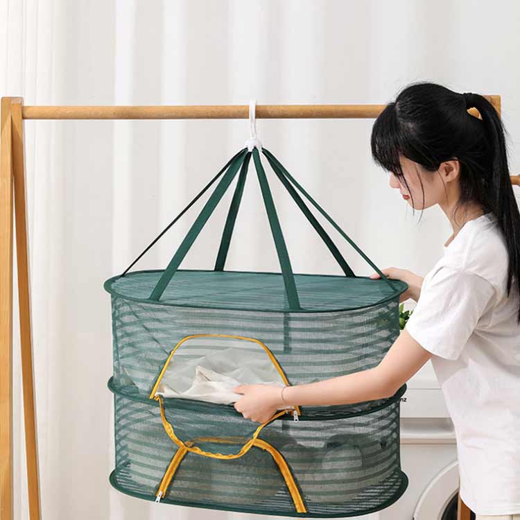 吊り下げ式なので、干す場所を探す必要はなく、風に飛ばされるのも心配なし、多機能の万能干しネット