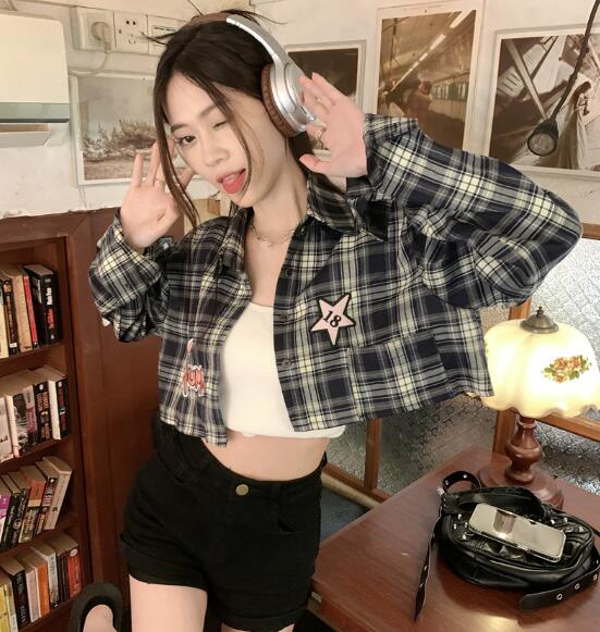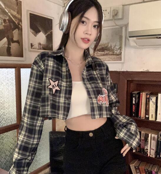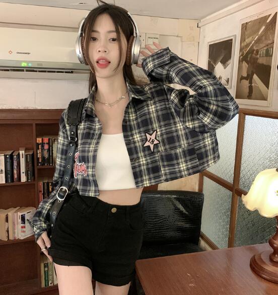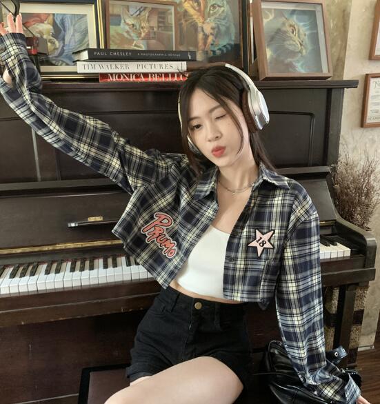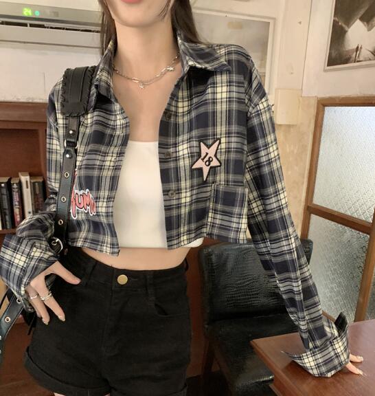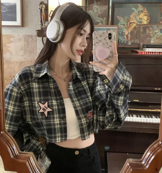 チェックシャツブラウストップスカットソ