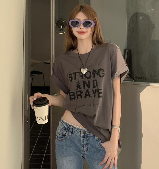 タンクトップレディースTシャツノースリーブUネックロゴプリント