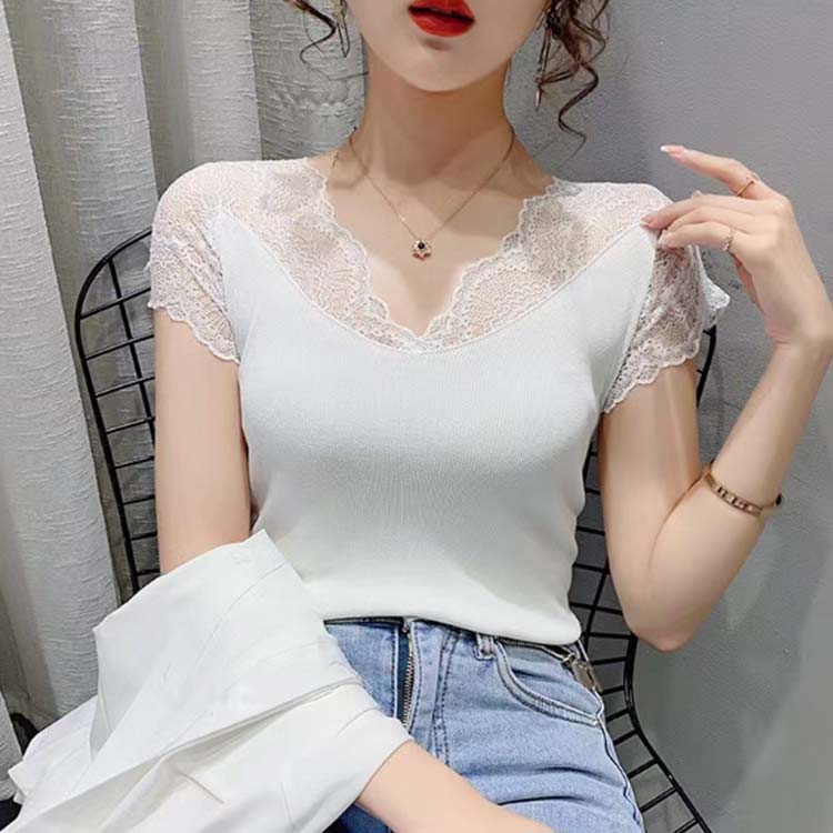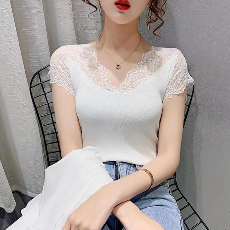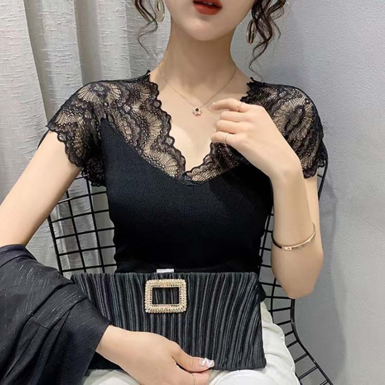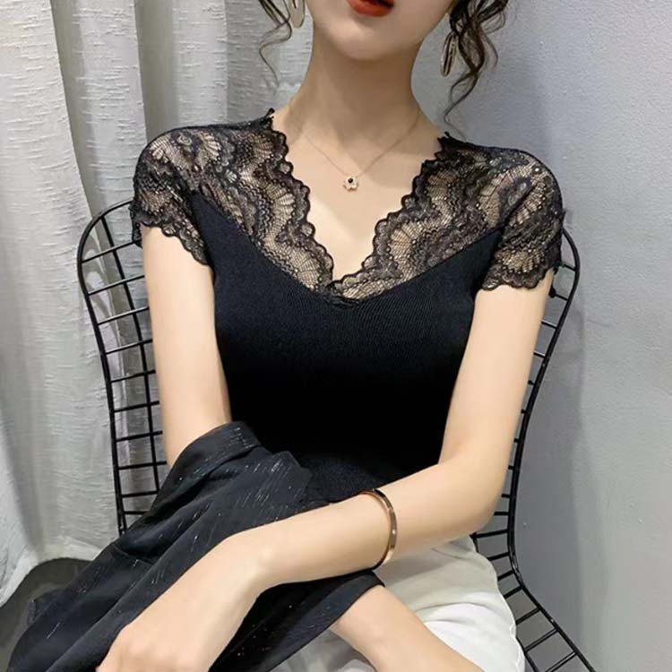透け感 レース M~2XL Vネック
