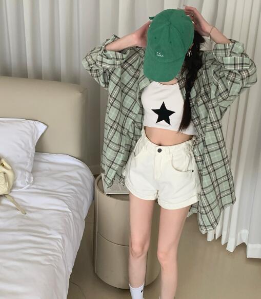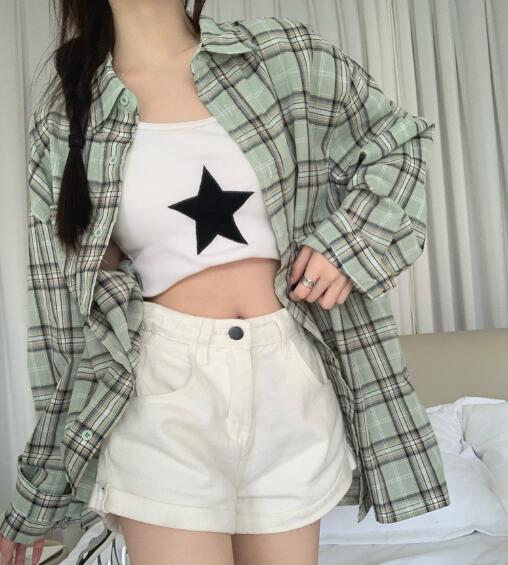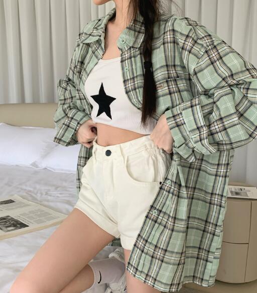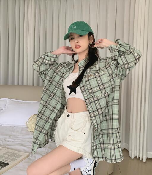 チェックシャツブラウストップスカットソ