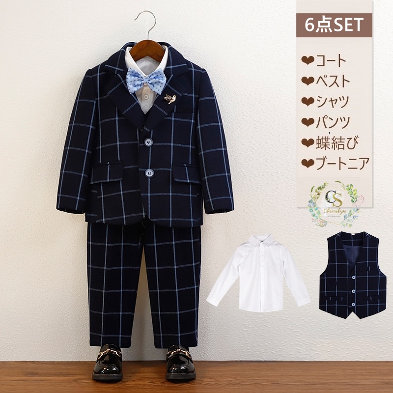 セット:コート、ベスト、シャツ、ボトムス、蝶結び、ブートニア