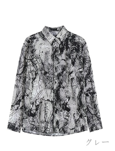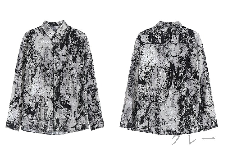 ♪M~3XL展開♪総柄 長袖シャツブラ