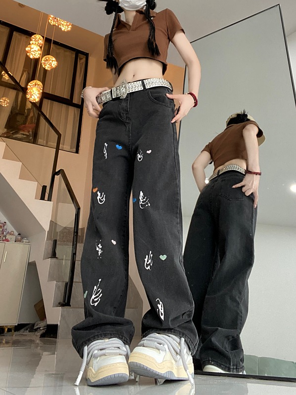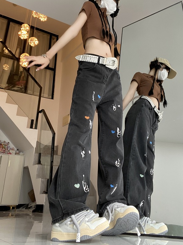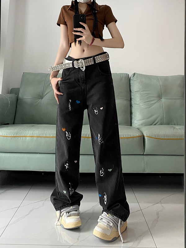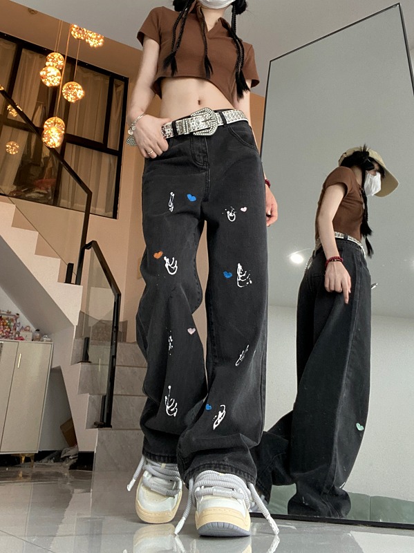 デニムパンツ ビジュー付き
