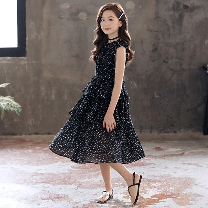 韓国子供服 子供ワンピース 夏 黒 親