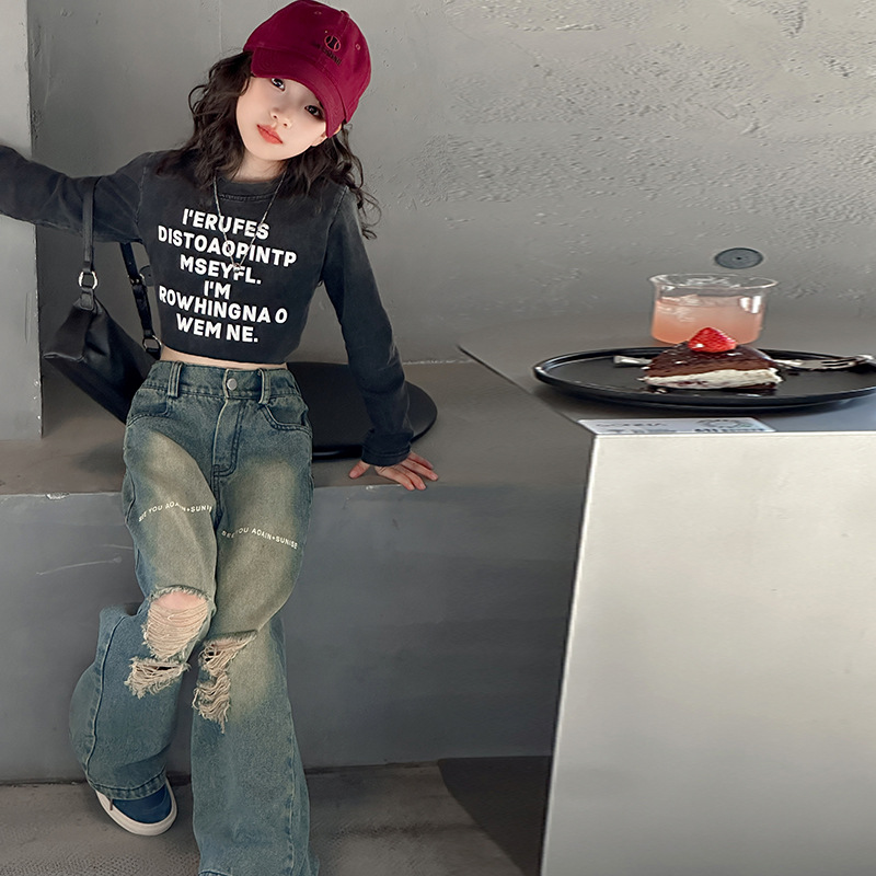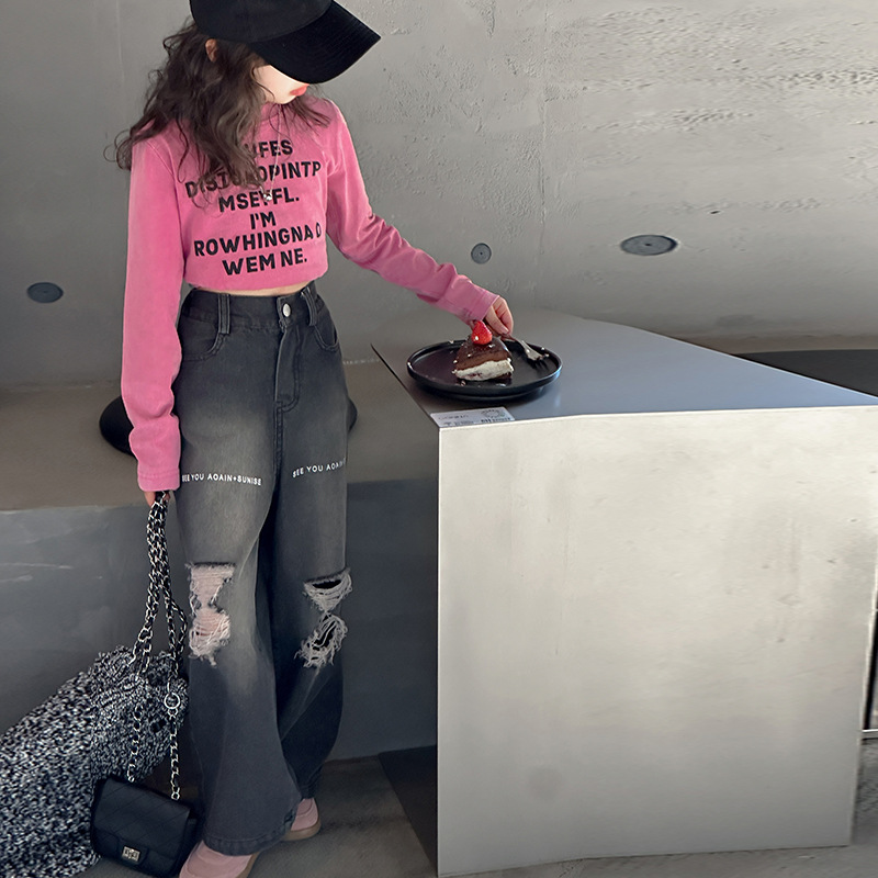 デニムパンツ ビジュー付き