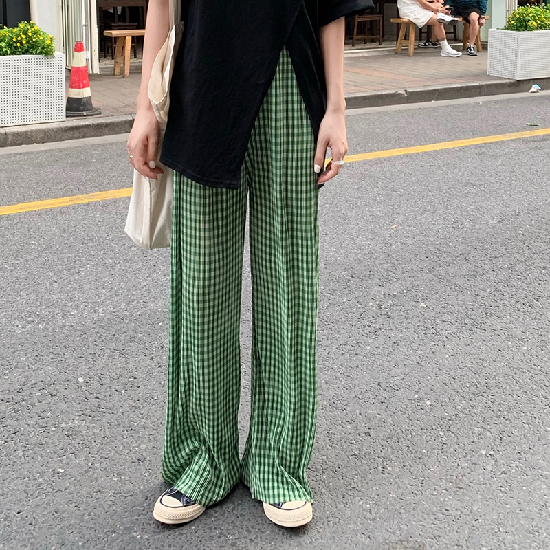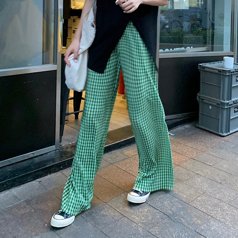 チェックリブパンツボトムスズボンロング