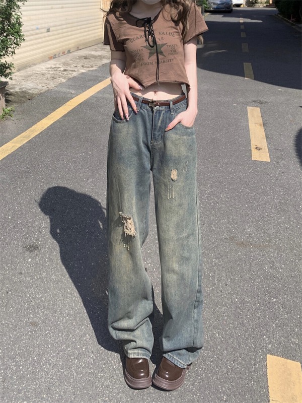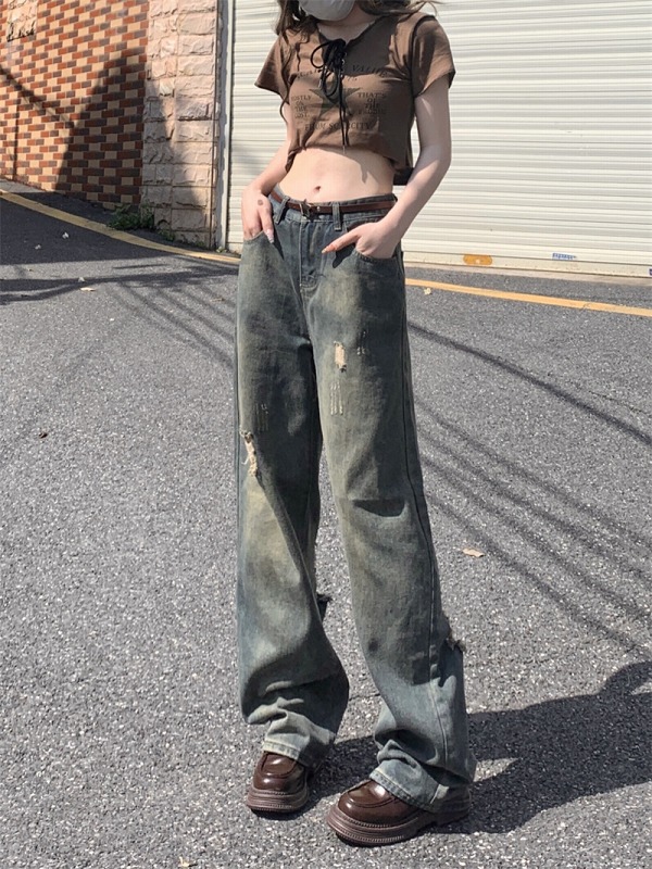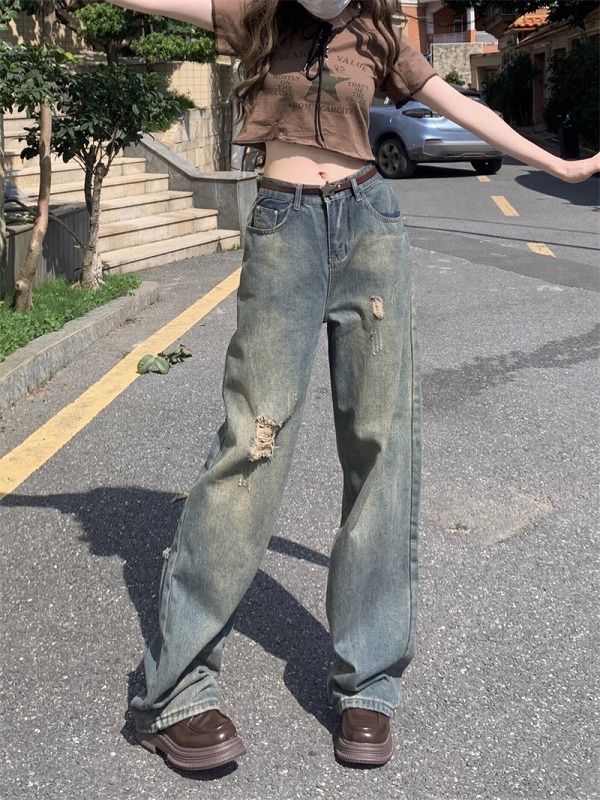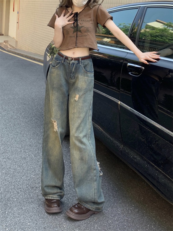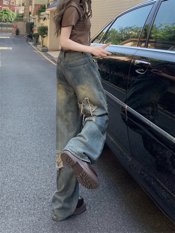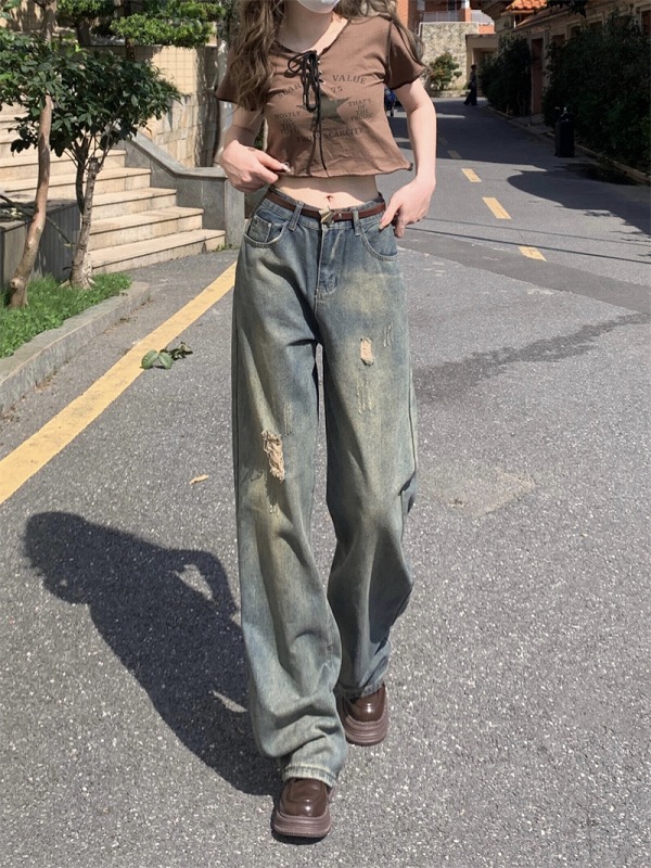 デニムパンツ ビジュー付き