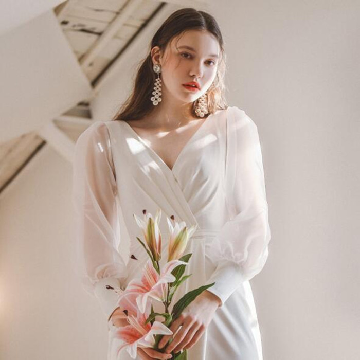 ウエディングドレス 長袖 袖あり 二次