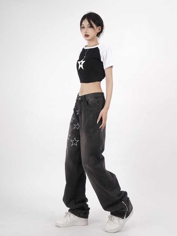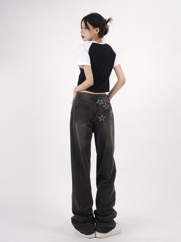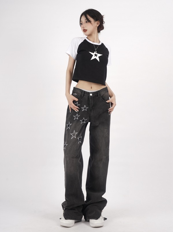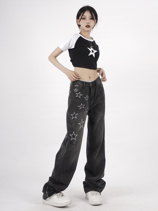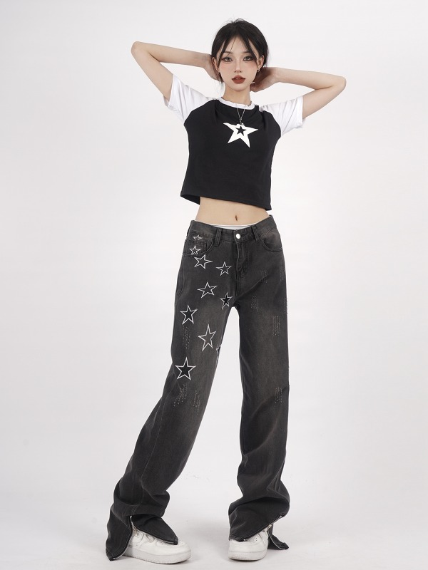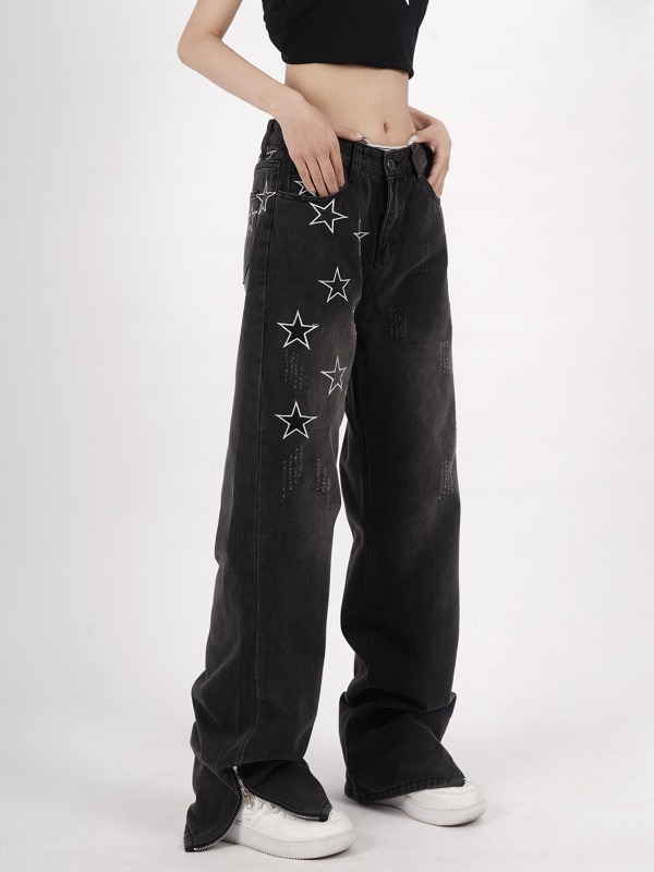デニムパンツ ビジュー付き