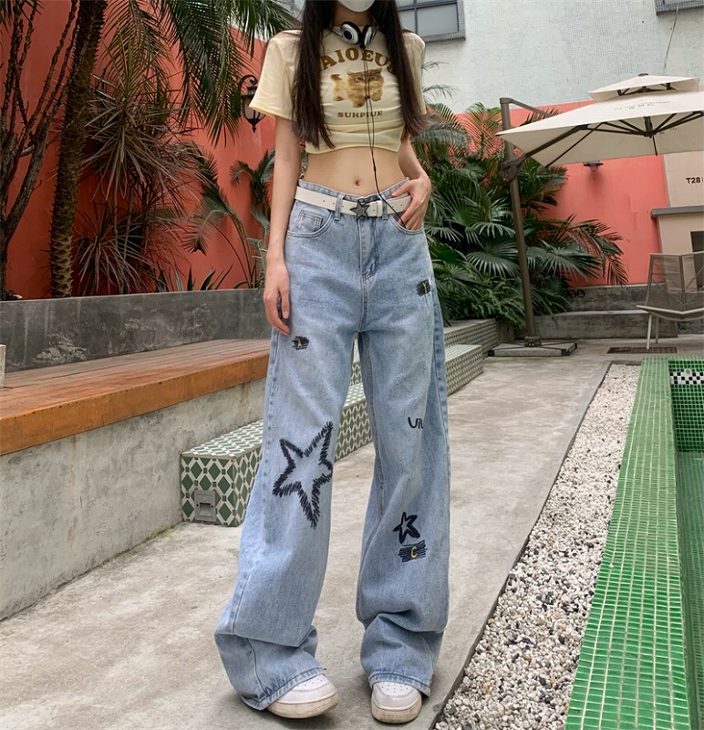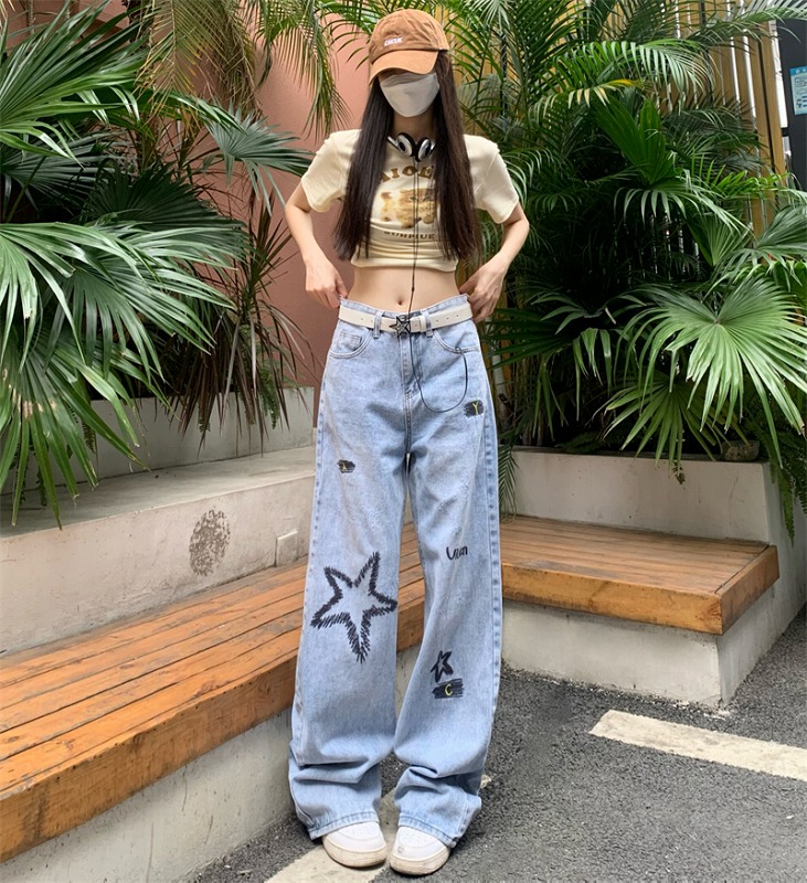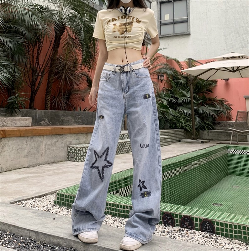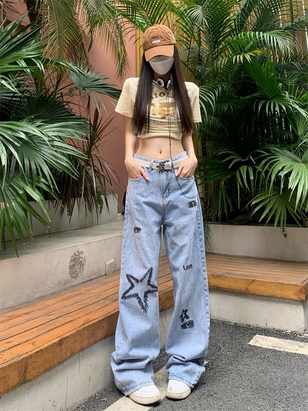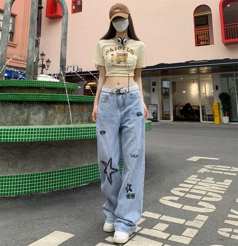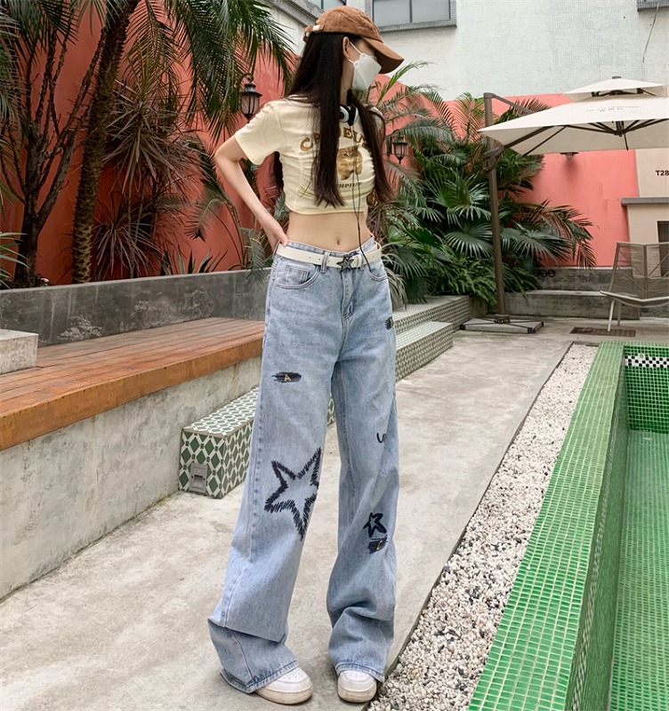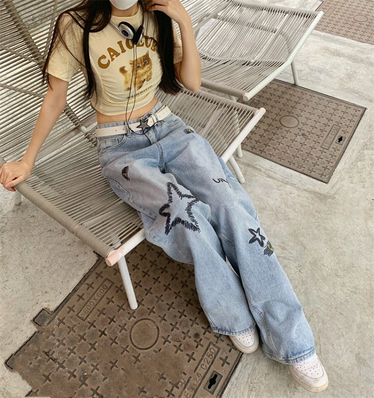 デニムパンツ ビジュー付き