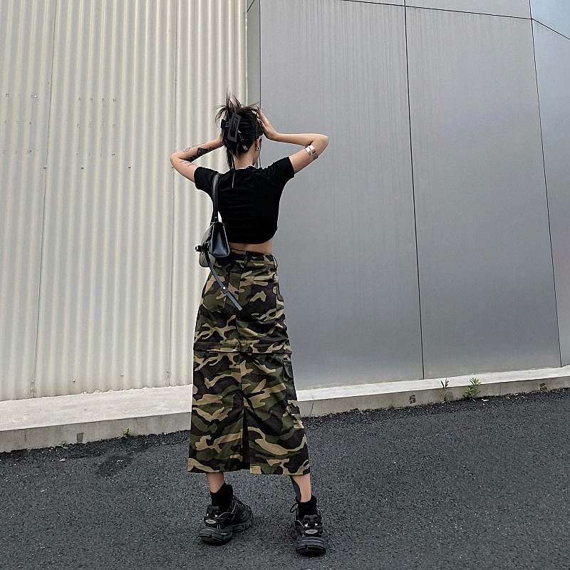 春物 春コーデ 夏物 夏コーデ 春夏新作 秋物 秋コーデ 冬物 冬コーデ 秋冬新作 新品 韓国ファッション レディース 流行 大人気 オシャレ 大人 きれいめ 綺麗目 上品 お洒落 スタイルUP 20代 30代 40代 50代 かっこいい 格好いい かわいい 可愛い lady trend fashion ♪S~L展開♪2WAY 取り外し可能 ミリタリー 迷彩 スカート ロングスカート ミニスカート ミニ丈 大きいサイズ ビッグ ゆったり ハイウエスト ポケット ダンス 衣装 ヒップホップ HIPHOP レディース ガールズ 個性的 奇抜 かっこいい