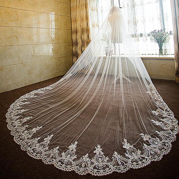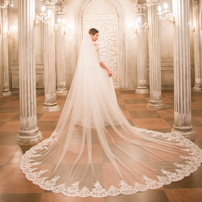 ウェディング ベール ロング 結婚式 挙式 二次会 ウェディング小物 フホワイト 3m サイズオーダー