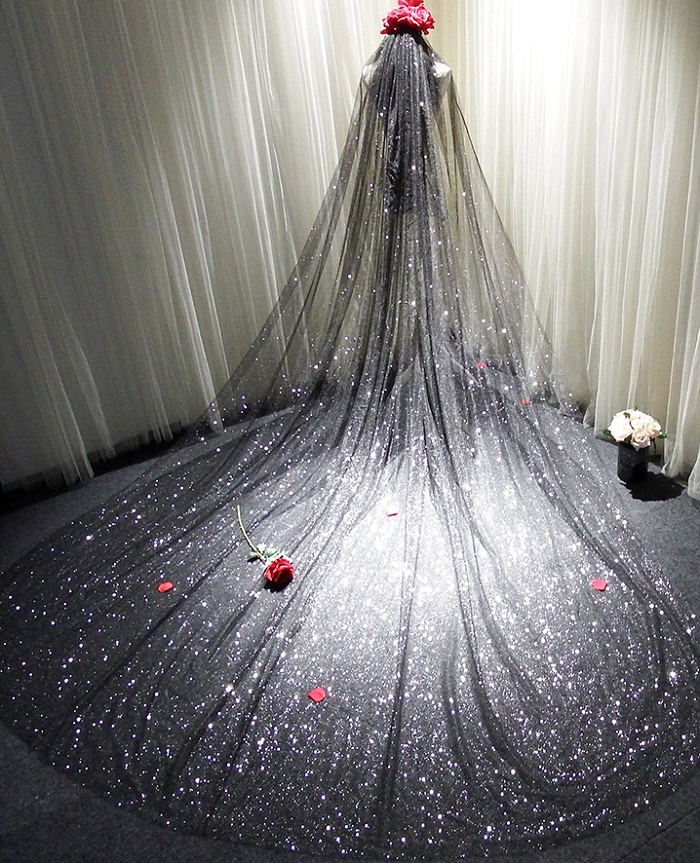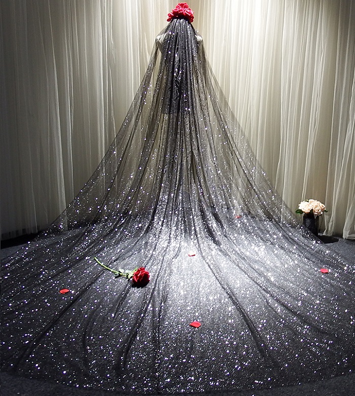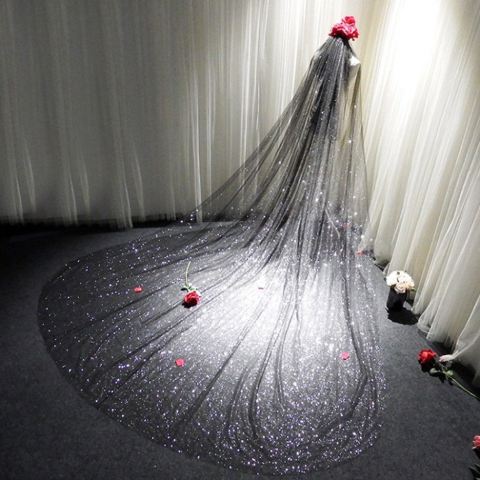 ウェディング ベール ロング 結婚式 挙式 二次会 ウェディング小物 ブラック 3m サイズオーダー