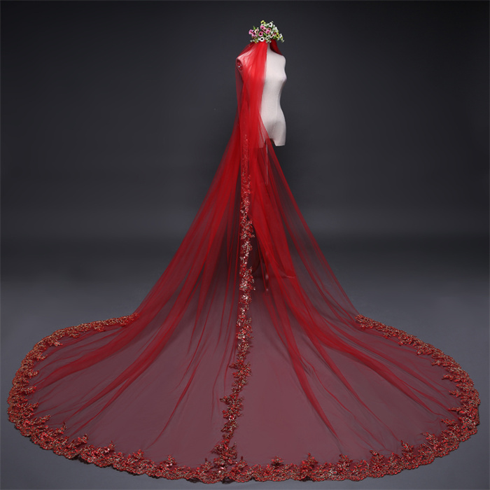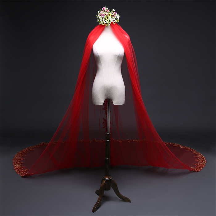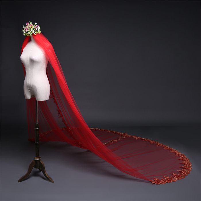 ウェディング ベール ロング 結婚式 挙式 二次会 ウェディング小物 レッド 3m サイズオーダーバッグ 小物 ブランド雑貨 ウェディング小物 ベール