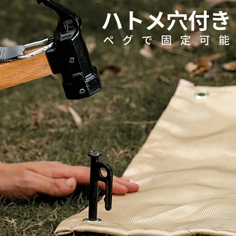 便利なハトメが4つ角に付いているので、スパッタシートをペグダウンすることができます。