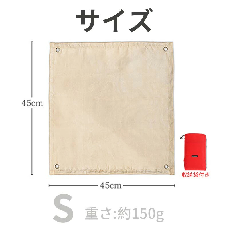 ソロキャンプで必要十分なSサイズ(45cm×45cm)、ファミリーキャンプでも使えるMサイズ(60cm×80cm)。 便利な2種類のサイズをご用意いたしました。