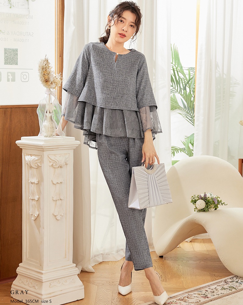 シアースリーブ ドッキングシャツ ボウタイシャツブラウス