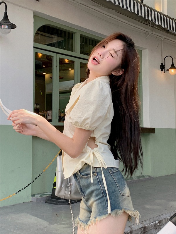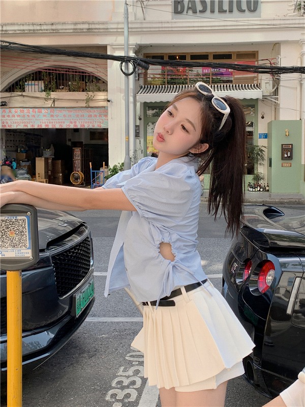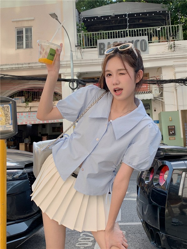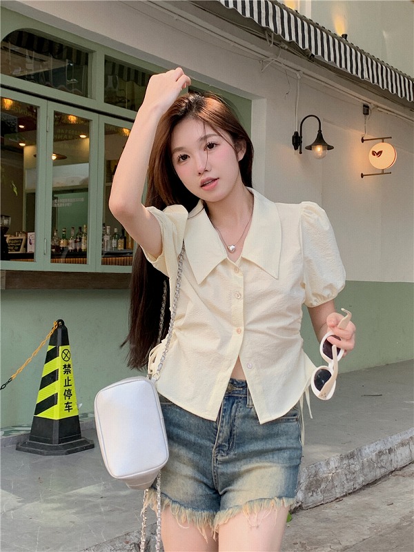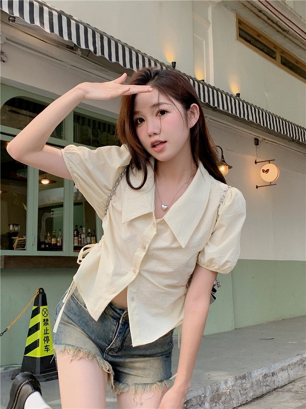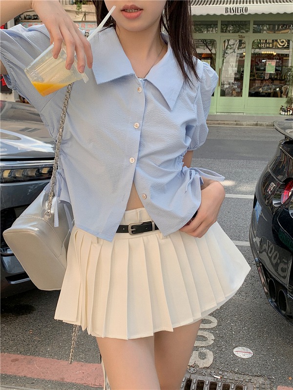 シアースリーブ ドッキングシャツ ボウタイシャツブラウス