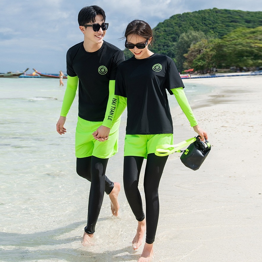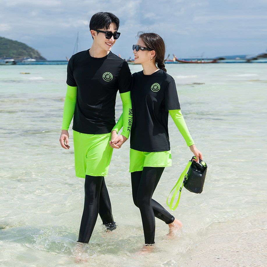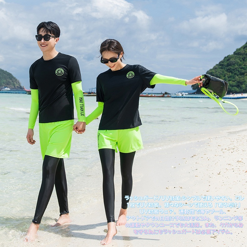 ★おしゃれでかわいいラッシュガードペア水着。恋人二人で一緒に着て、ラブラブ感が溢れている