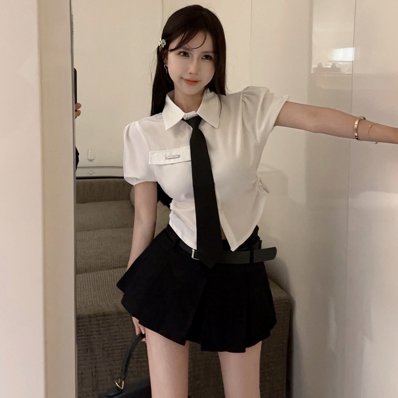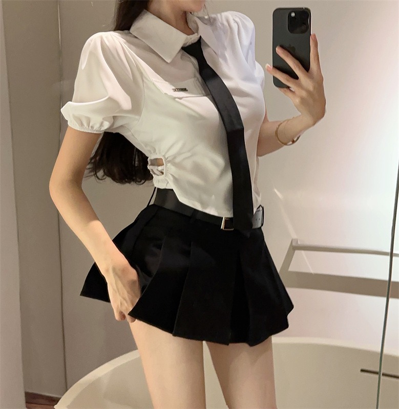 シアースリーブ ドッキングシャツ ボウタイシャツブラウス