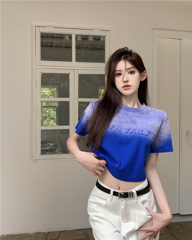 Tシャツ カットソー 五分 七分 半袖 プリント 切り替え 体型カバー 大きいサイズあり 原宿系ファッション 韓国風 ダンス 衣装 ダンサー ヒップホップ HIPHOP 個性 奇抜 かわいい 青文字系