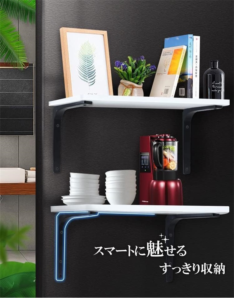 L型の棚ブラケットは高品質のスチールで製造されております。金具の表面は、なめらかな肌触りです。防錆性と耐食性があり、長くご使用頂けます。