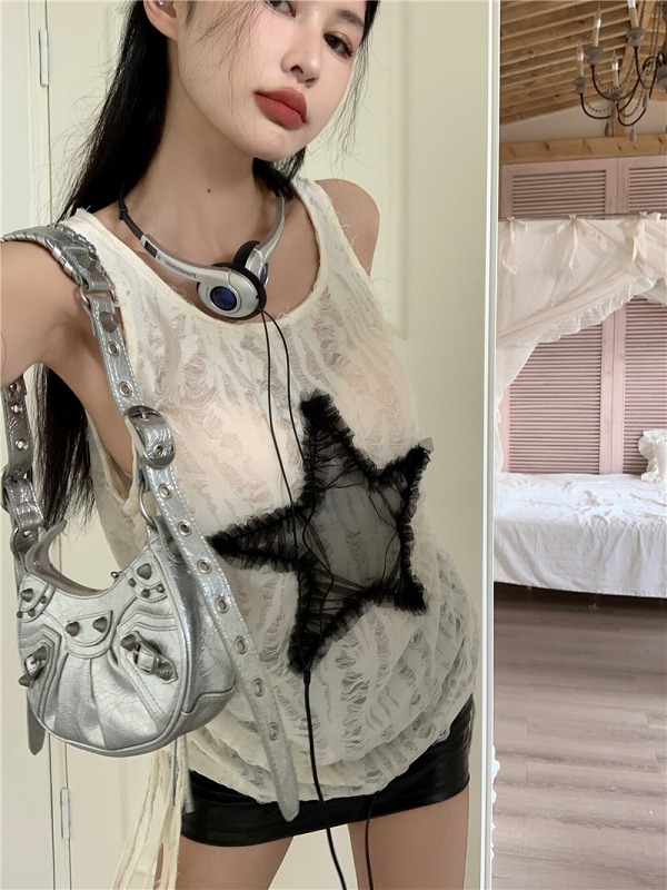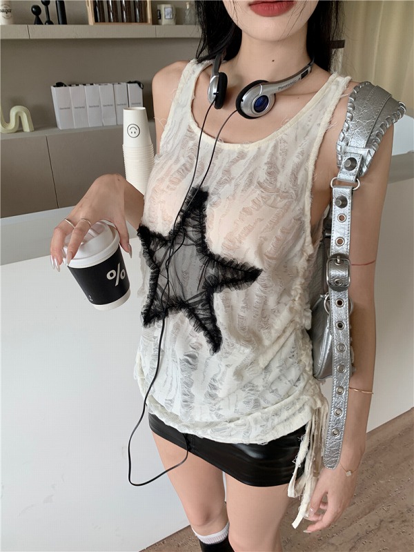 タンクトップレディースTシャツノースリーブUネックロゴプリント