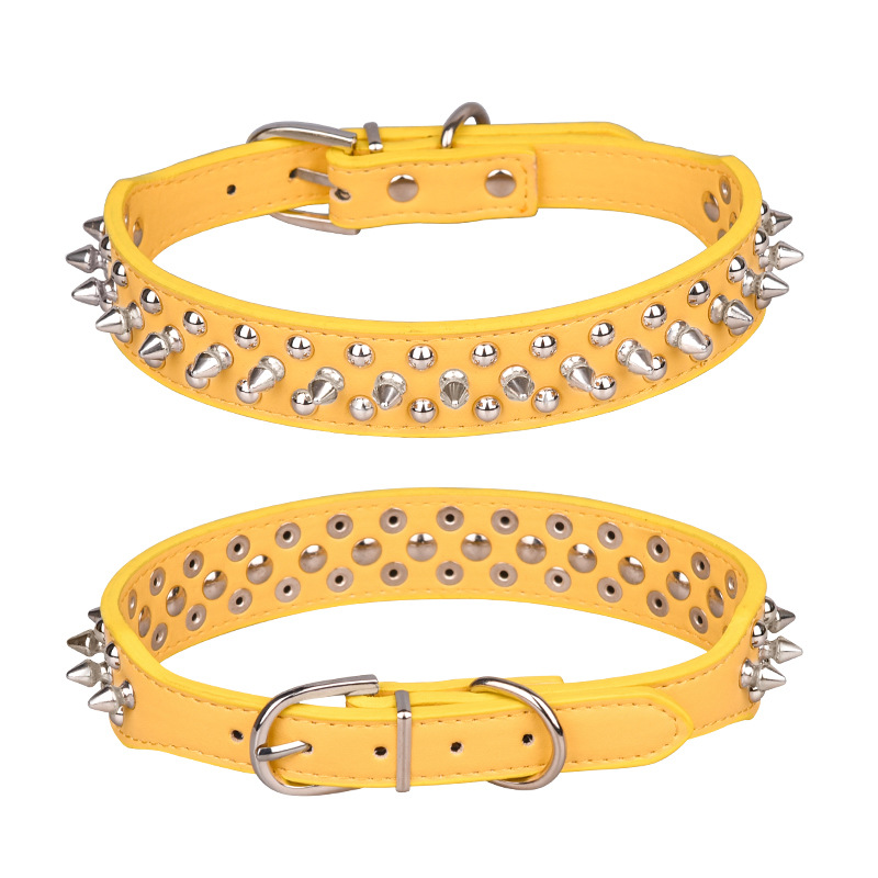 犬 猫 ペット 首輪 スタッズ トゲトゲ 5穴 調節 可能 小型犬 中型犬 大型犬 かわいい ワイルド おしゃれ