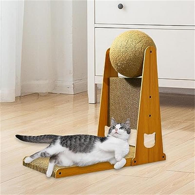 猫スクラッチボード付き猫スクラッチボールは、高品質のサイザル麻と木材素材で作られており、環境に優しく、丈夫で耐久性があります。
