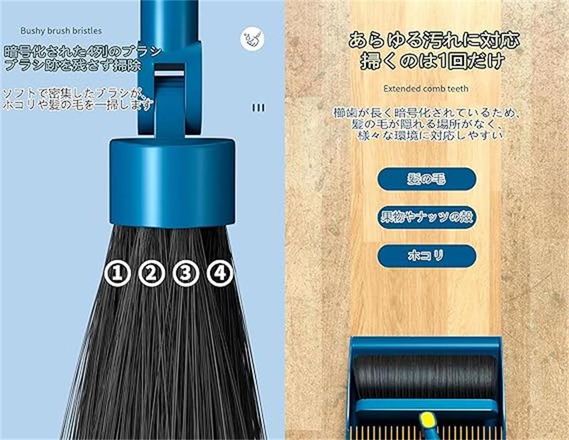 他の追随を許さない掃除体験をお楽しみください!ユニークなデザインは、効率的で簡単なクリーニングを可能にします。伸びる櫛歯と特殊なほうきが完璧に組み合わされ、隅々までホコリを掃き、死角なく掃除できます。特殊素材が優れた掃き掃除効果を発揮し、汚れを徹底的に取り除きます。あなたの家に新しい外観を与え、純粋でほこりのない快適な空間をお楽しみください。新世代の掃除用具があれば、掃除はより簡単で効果的になります。