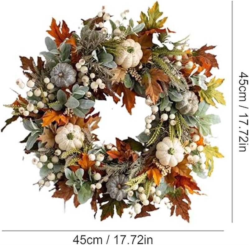 45cm ハロウィン 飾り 花輪 秋のパンプキン リース 人工リース カボチャのカエデの葉の果実と秋のリース フロントドア用秋リース 秋の収穫リース 秋のウェディングパーティー 感謝祭