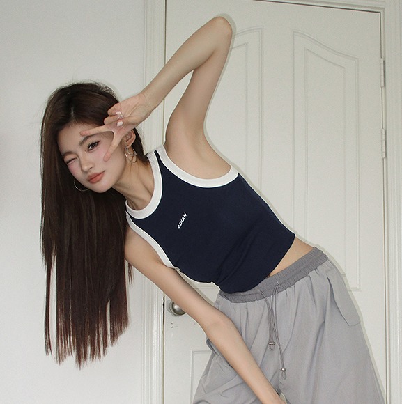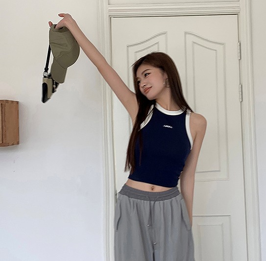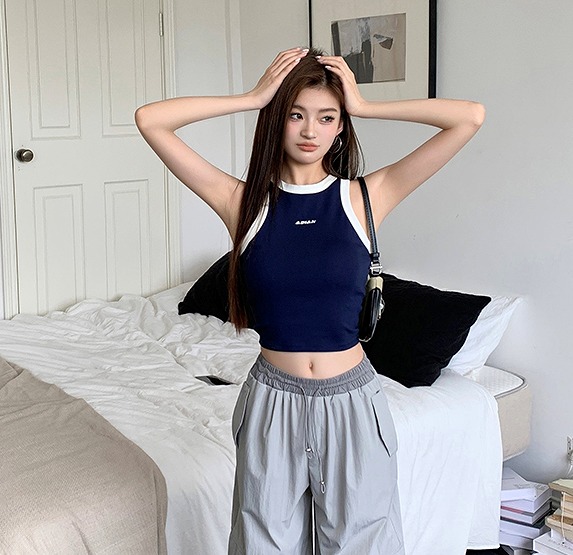 タンクトップレディースTシャツノースリーブUネックロゴプリント