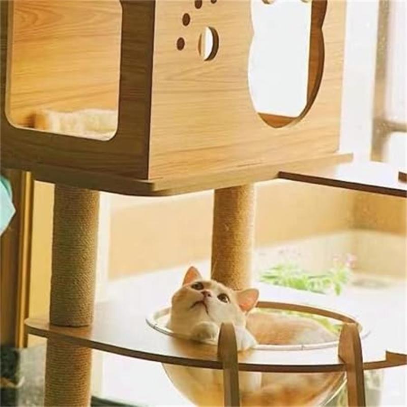 キャットタワー 透明宇宙船 頑丈 据え置き木製 麻紐 爪とぎボール 猫ベッド 大型 木目調 多頭飼い 据え置き型 爪とぎ 猫タワー 爪研ぎ 高さ135cm