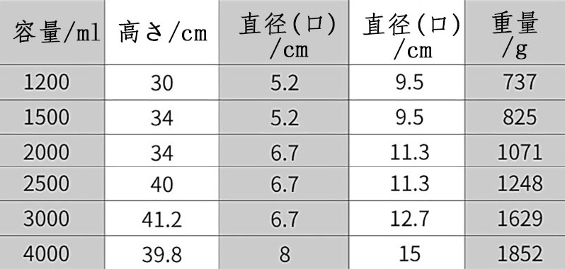 Key1: 1200ML 1500ML 2000ML 2500ML 3000ML 4000ML