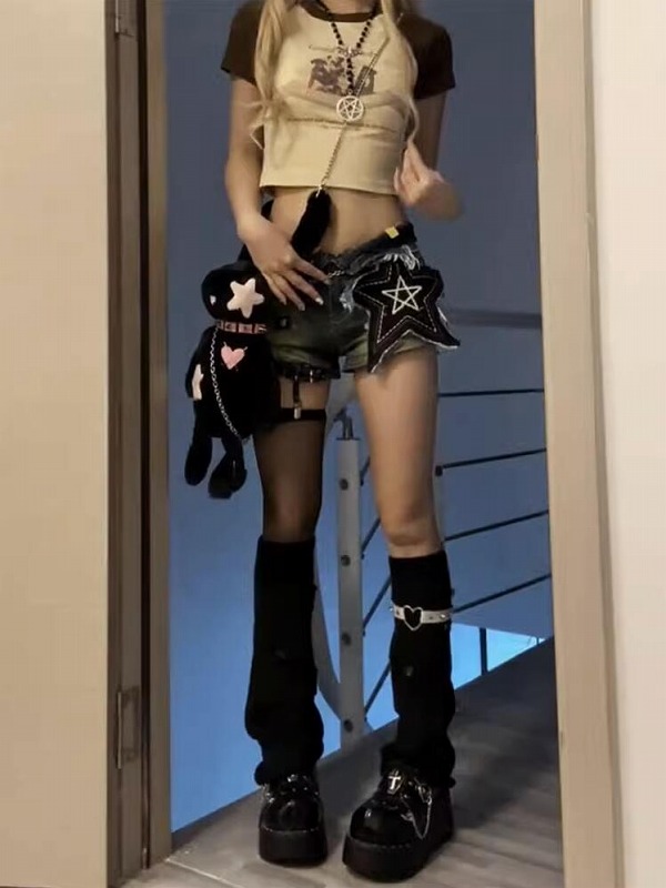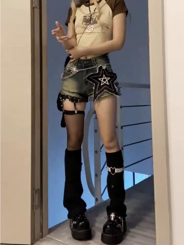 ♪S-XL展開♪ワッペンダメージ星柄ジ