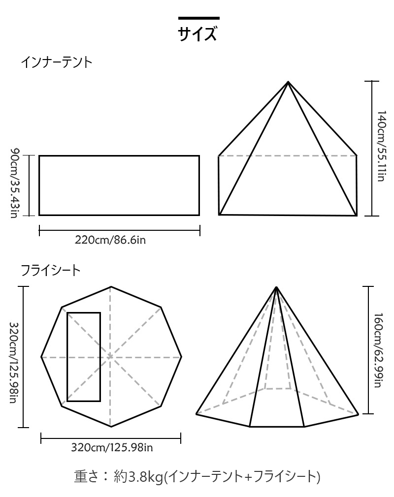 ワンポールテント 210D 焚き火可